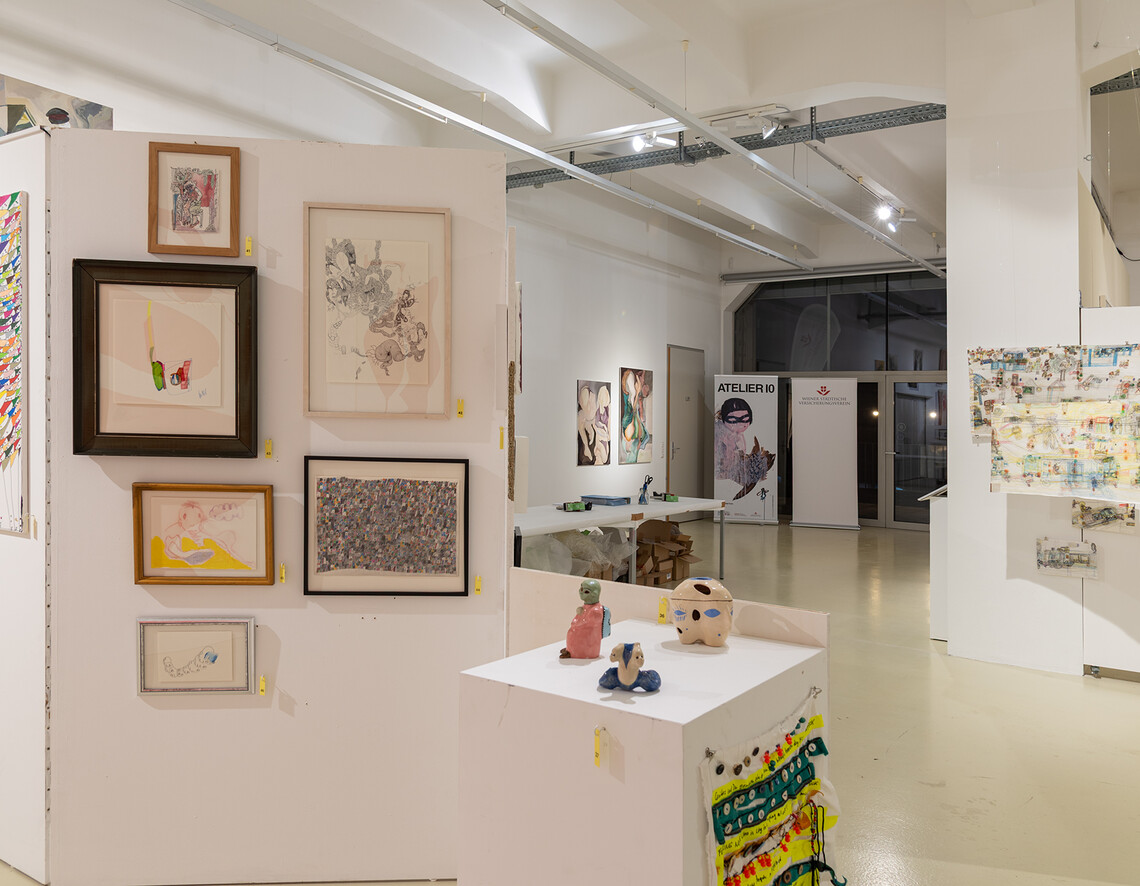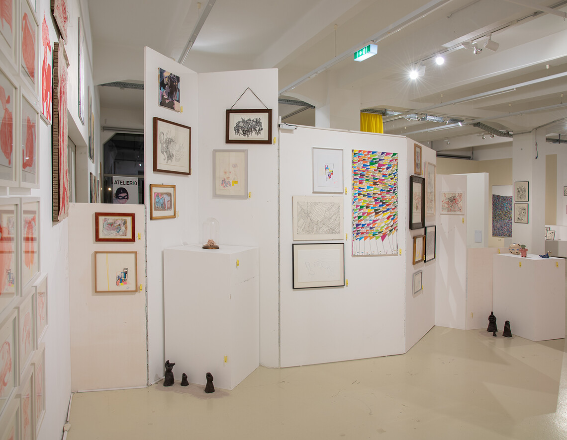 Die Künstler*innen des Atelier 10 stellten eine Auswahl an Zeichnungen, Malereien und Objekte stark vergünstigt zur Verfügung.