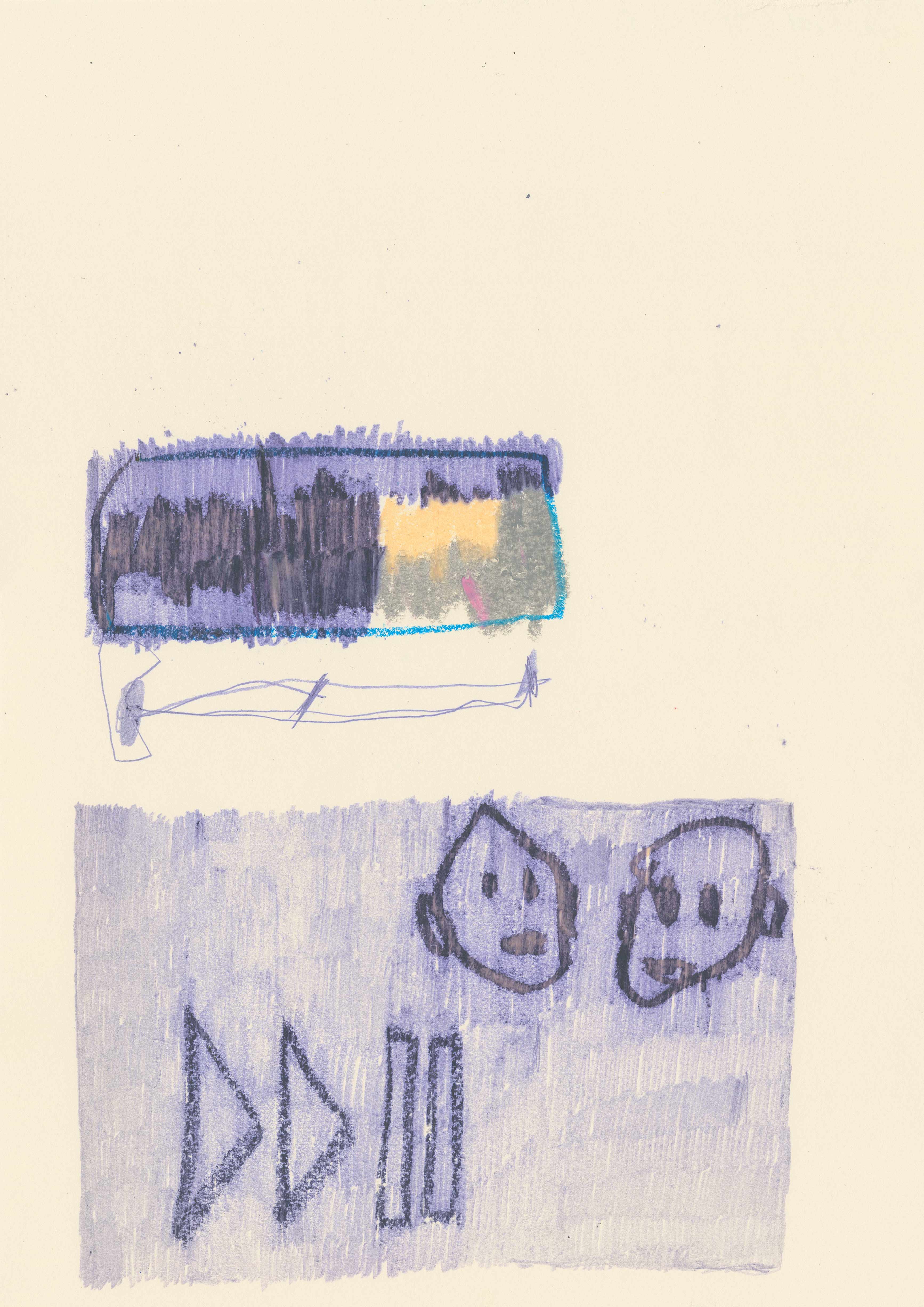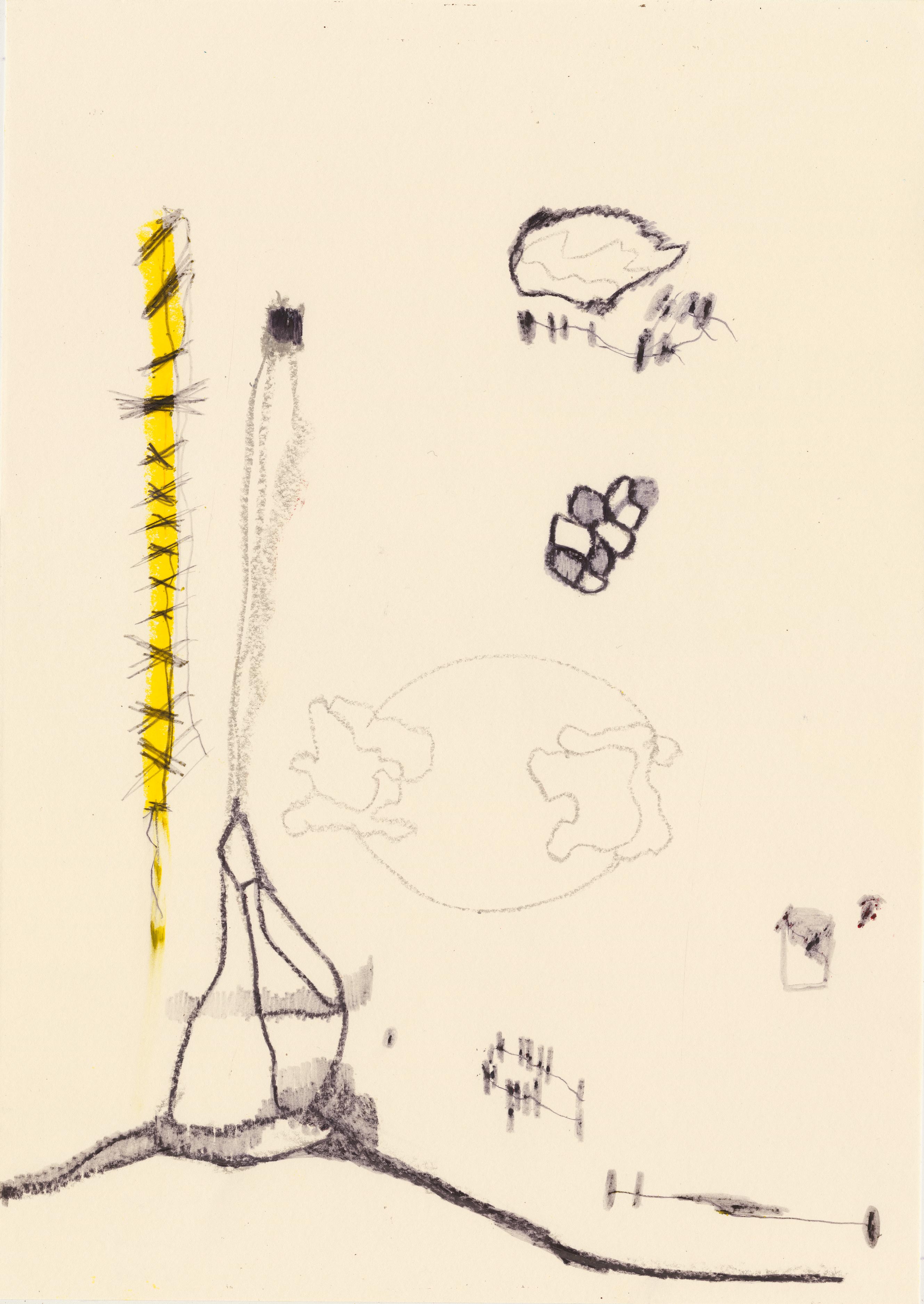 Grammel war als Kind von sogenannten Nachbildern fasziniert, von Formen, die sich nach dem Blick auf Licht- und Farbquellen automatisch auf der Retina des Auges bilden. Er spielte damals mit diesem flüchtigen „Material“, indem er durch die Bewegung der Augen die Nachbilder manipulierte und umgestaltete. Auf einigen seiner Zeichnungen sind dunkle, scherben-, blitz- und dornartige Formationen zu sehen – abstrakte Formationen, die ihn selbst an diese Nachbilder erinnern.