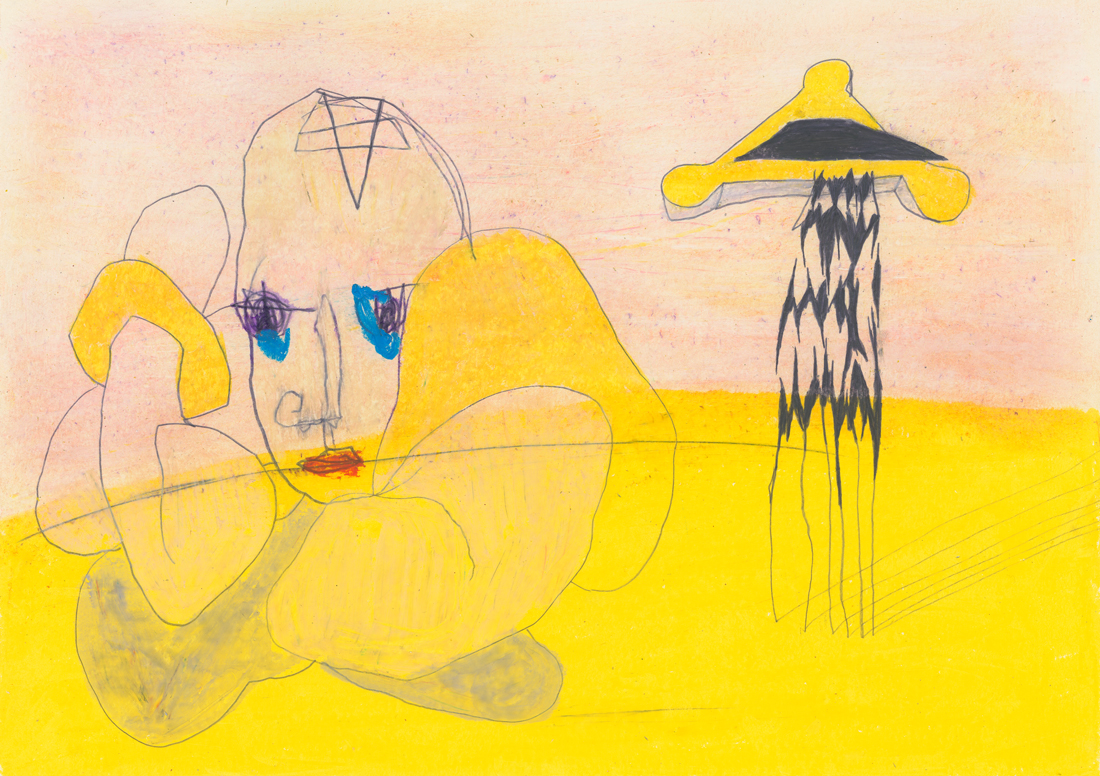 In seinem Bildaufbau wechselt er zwischen jenen hakigen, ungegenständlichen Organismen, geometrischen Formen und Linien, die auch auf dem Zeichenblatt irgendeinem gesteuerten Zufallssystem zu folgen scheinen. An anderer Stelle werden seine Räume konkreter – es bleiben aber unwirkliche Räume und Landschaften, Motivwelten mit plötzlich aufpoppenden Menschengestalten und schwebenden Gegenständen, die manchmal seltsam Richtung Horizont gleiten.