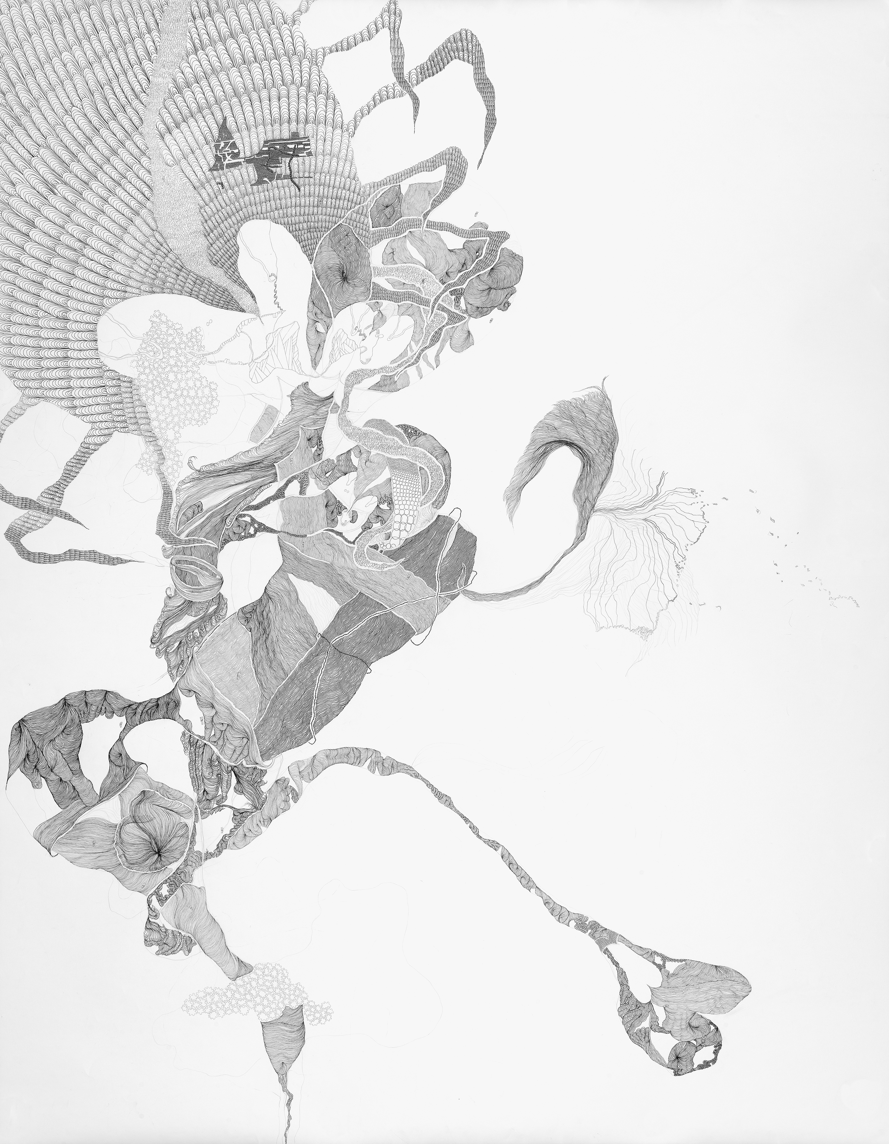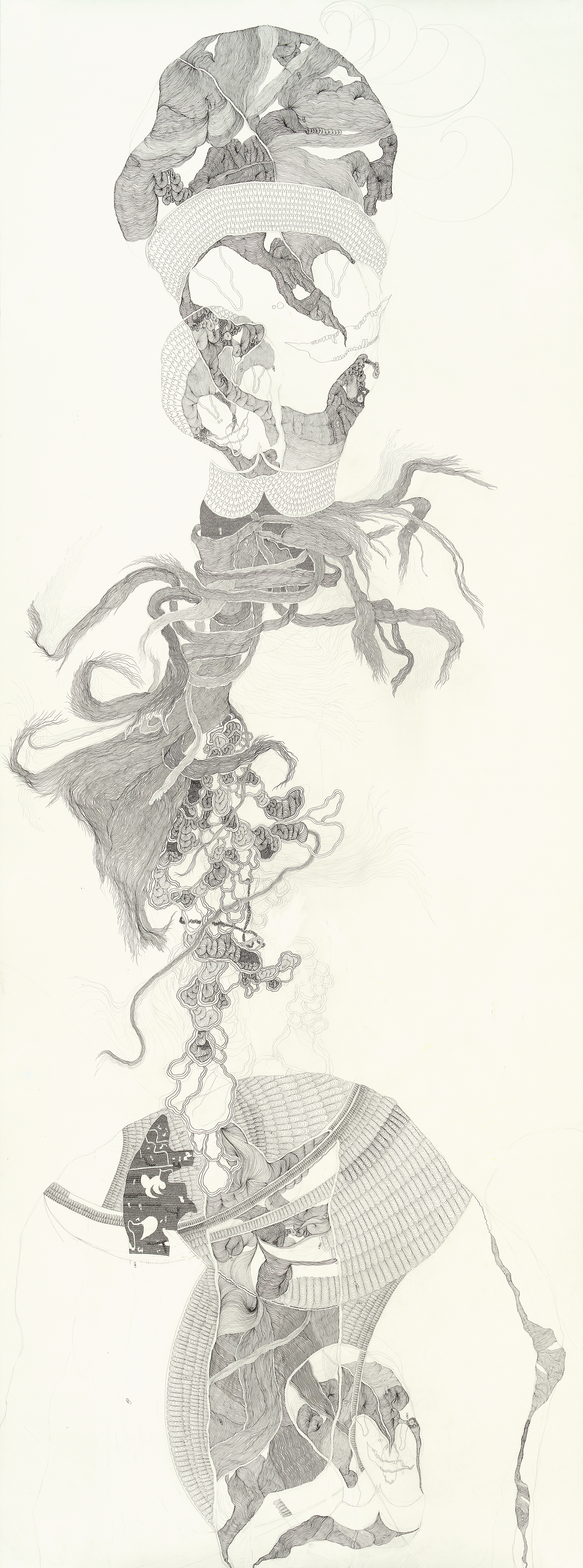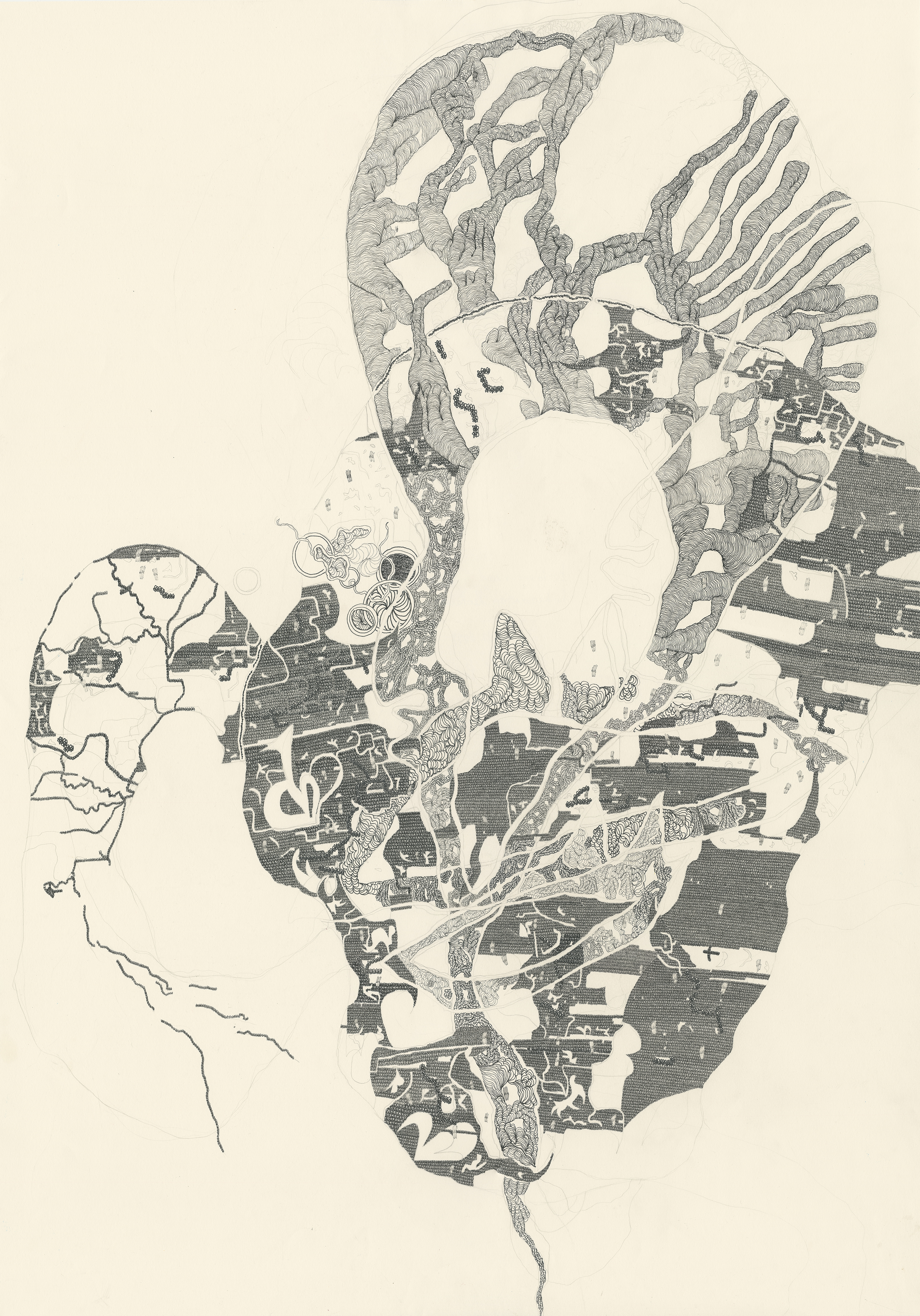 Während ihre früheren Arbeiten zurückhaltender und illustrativer waren, kontaminiert sie heute Figuren und Objekte, Körperteile, Architektur und Ornamentik zu freien zeichnerischen Assoziationsketten, zu aufwendigen Kompositionen von manchmal barocker Dichte und Opulenz. Ihre Motive zieht sie mittlerweile auf bis zu 2 x 3 m großen Papierflächen. Die Struktur ihrer Gebilde erinnert zuweilen an Pestsäulen, Kartografien, pflanzliches Dickicht, an martialisches Gerät oder innerorganisches Gewürm.