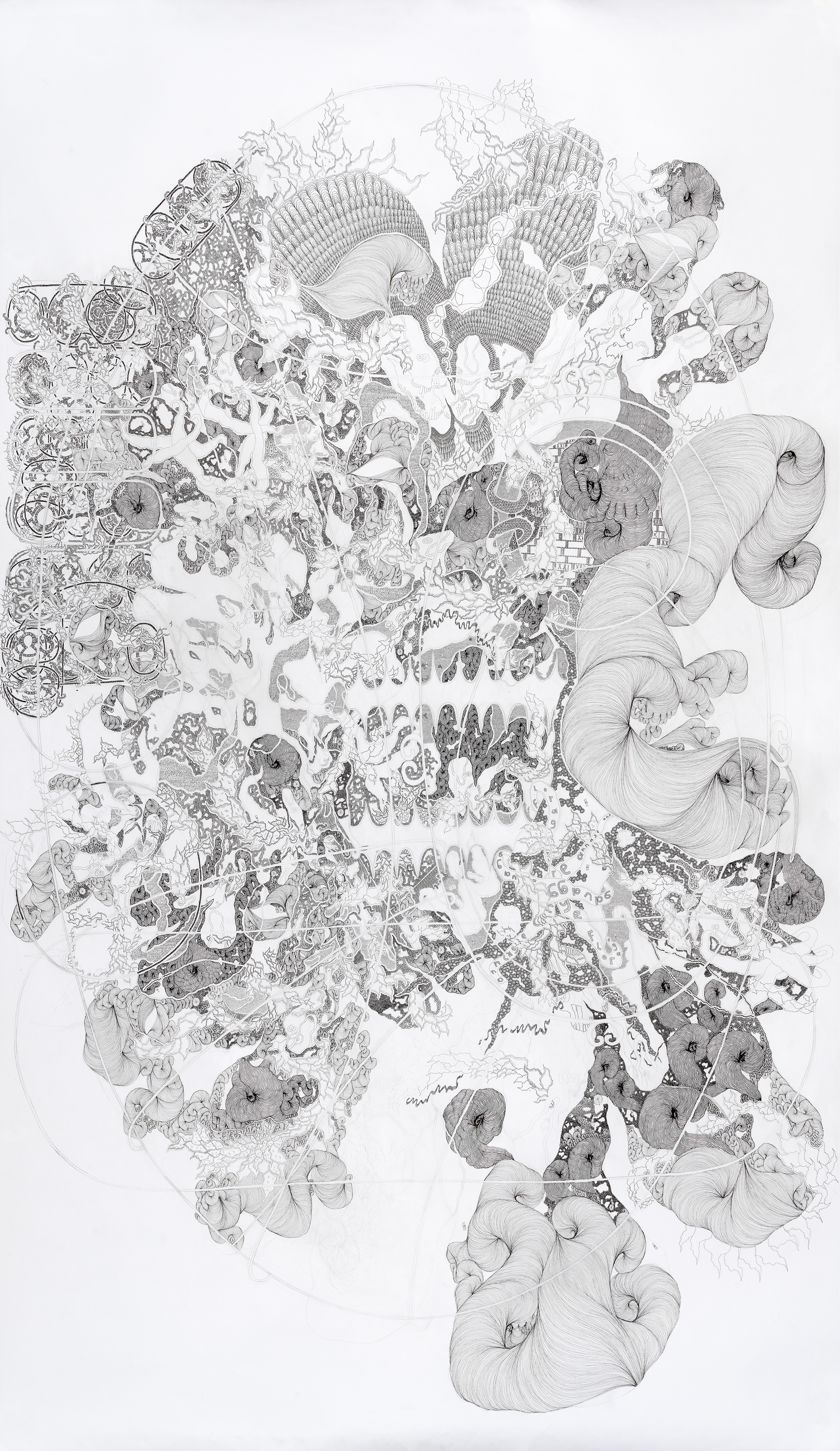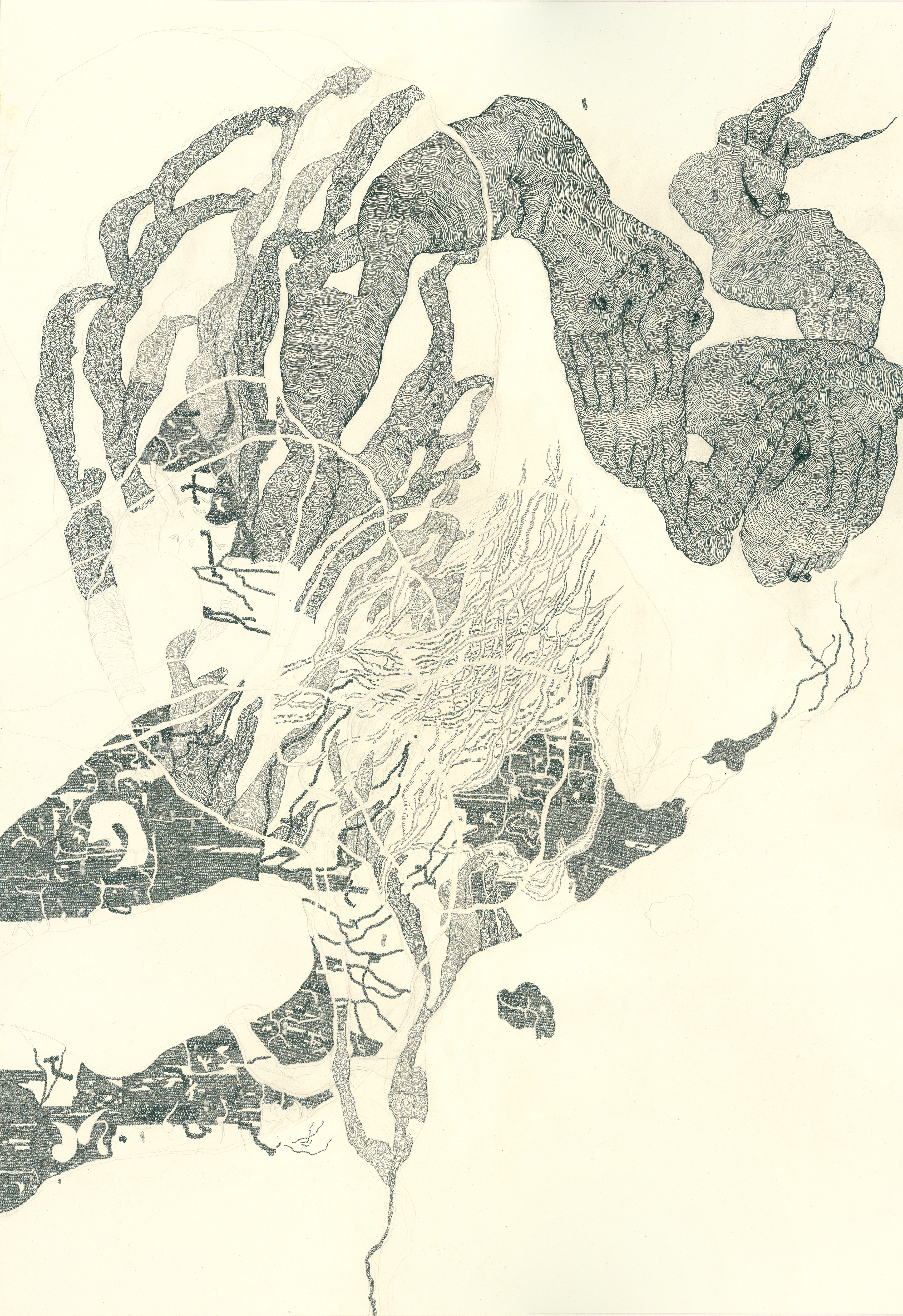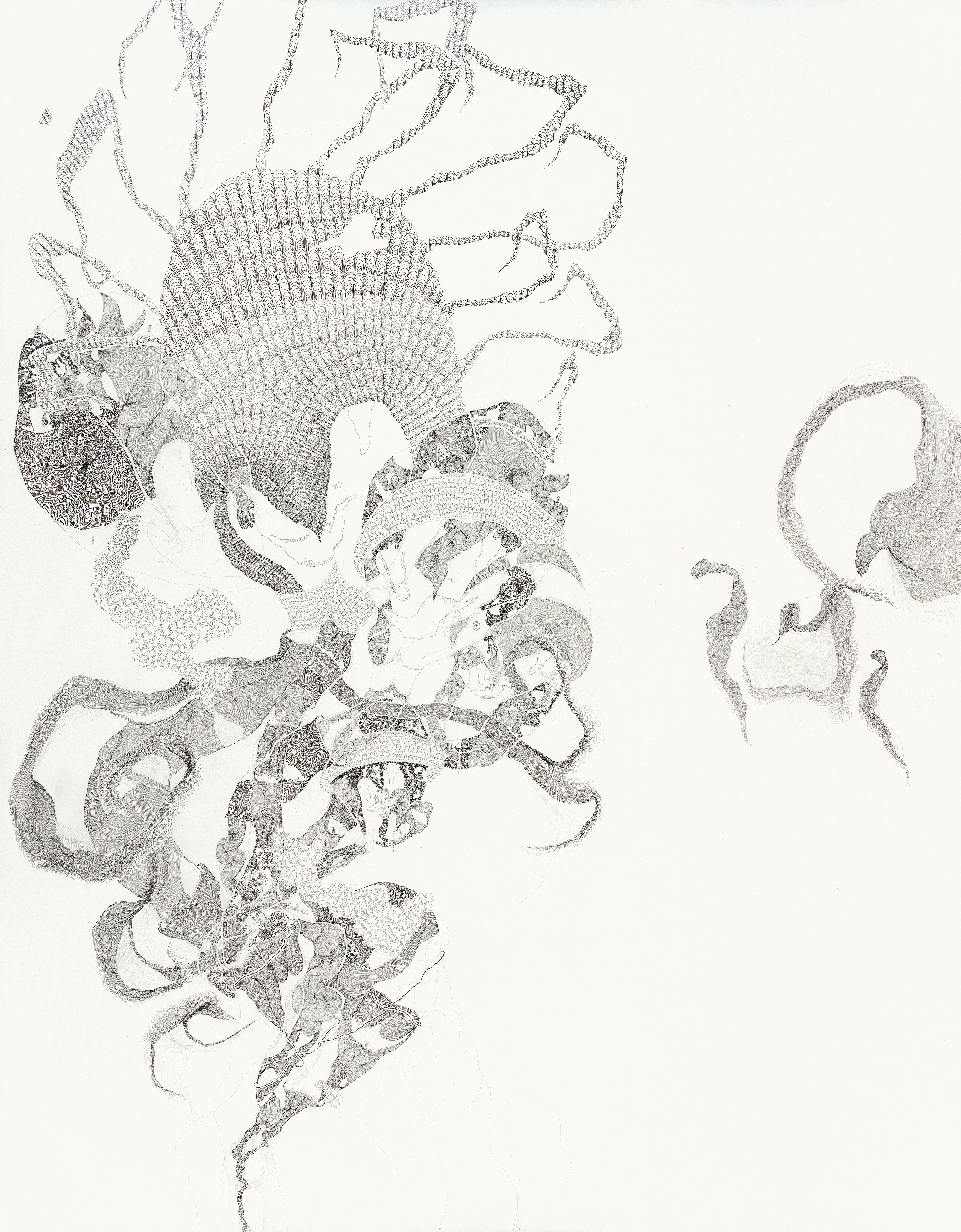 Während ihre früheren Arbeiten zurückhaltender und illustrativer waren, kontaminiert sie heute Figuren und Objekte, Körperteile, Architektur und Ornamentik zu freien zeichnerischen Assoziationsketten, zu aufwendigen Kompositionen von manchmal barocker Dichte und Opulenz. Ihre Motive zieht sie mittlerweile auf bis zu 2 x 3 m großen Papierflächen. Die Struktur ihrer Gebilde erinnert zuweilen an Pestsäulen, Kartografien, pflanzliches Dickicht, an martialisches Gerät oder innerorganisches Gewürm.